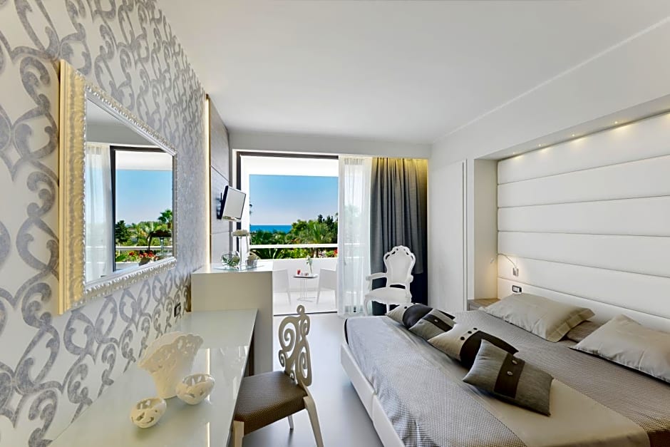 Boasting views of the sea and a furnished terrace, this air-conditioned room features a flat-screen TV with Sky channels and a private bathroom with marble interiors and a hot tub. A safe and mini-bar are also included. WiFi is free.